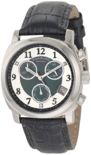 A remarkable and rare timepiece in Stuhrling Original’s history and collection, the Stuhrling Original Women's Lifestyles Collection Fiorenza Swarovski Crystal Mother-Of-Pearl Day and Date Watch is a true testament of watchmaking. This lady’s watch is one of the few that utilizes a Swiss chronograph movement, offering the complications typically found in men’s timepieces: a 30-minute counter, 60-minute counter, day and date, along with chronograph seconds, all fitted into a petite case. But don’t let the size of this watch fool you, because the design aspects are simply amazing. You will first notice the elegant Mother-Of-Pearl on the central dial, along with the radiant finish beneath the individually applied Arabic Numerals. Swarovski crystals, colored to match the executions, also decorate the dial in form of markers, while the case is polished to a beautiful shine. Finally, the Fiorenza is outfitted with an alligator embossed genuine black leather strap, each also matching the execution: a perfect finish for this incredible timepiece.